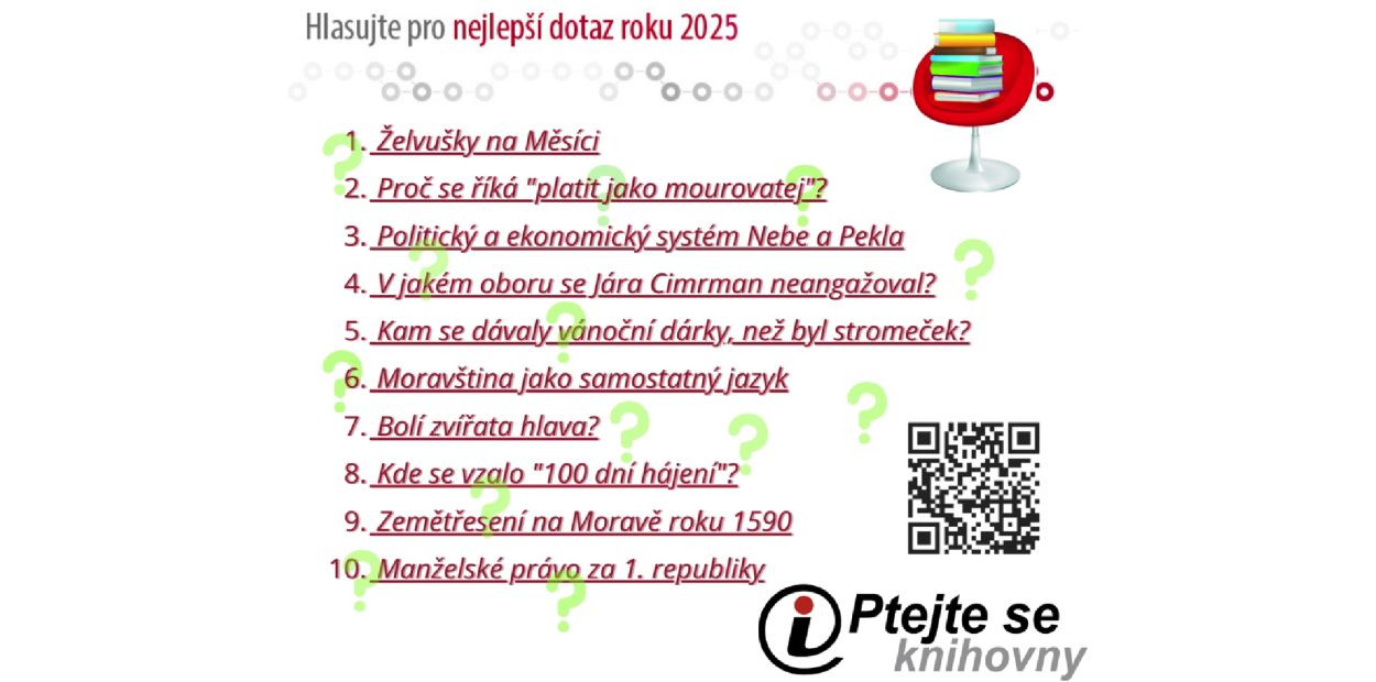 Najdete pár minut a zapojíte se do naší každoroční ankety? Spouštíme hlasování o nejzajímavější dotaz Ptejte se knihovny uplynulého roku! Vaše hlasy rozhodnou v anketě Dotaz roku 2025.